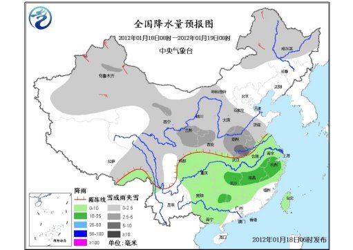 18日08時至19日08時,新疆大部、西北地區大部、內蒙古西部和東部、黑龍江大部、華北西部和中南部、黃淮大部、江淮西北部、江漢北部、西藏東北部、川西高原北部等地有小到中雪或雨夾雪,其中,黃淮西南部、江淮西北部局地有大雪;江淮中東部和西南部、江漢南部、江南、華南北部和西部、西南地區東部、西藏東南部、臺灣等地有小到中雨或陣雨;新疆北部、內蒙古東北部等地有4~6級風,新疆山口地區風力可達8級。